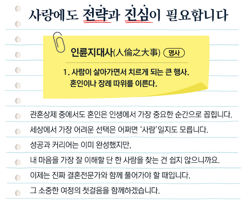 당신의 인생에서 가장 중요하고 우아한 여정, 제가 직접 책임지겠습니다.